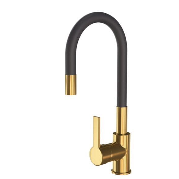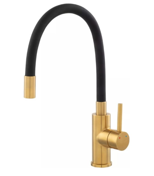 Ferro bateria kuchenna stojąca z elastyczną wylewką ZUMBA INOX GOLD czarny/złoty szczotkowany BZA4BSSG
