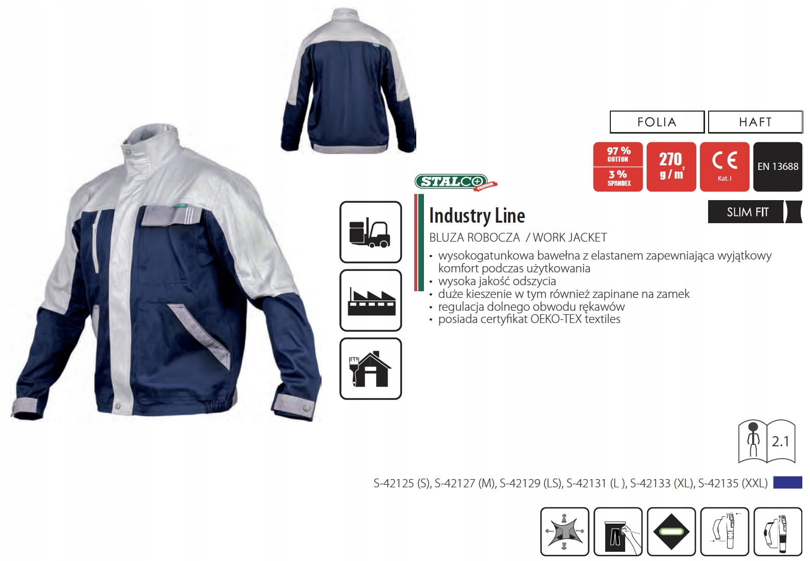Zastosowanie: - ubranie sprawdzi sie podczas wykonywania prac transportowo-magazynowych