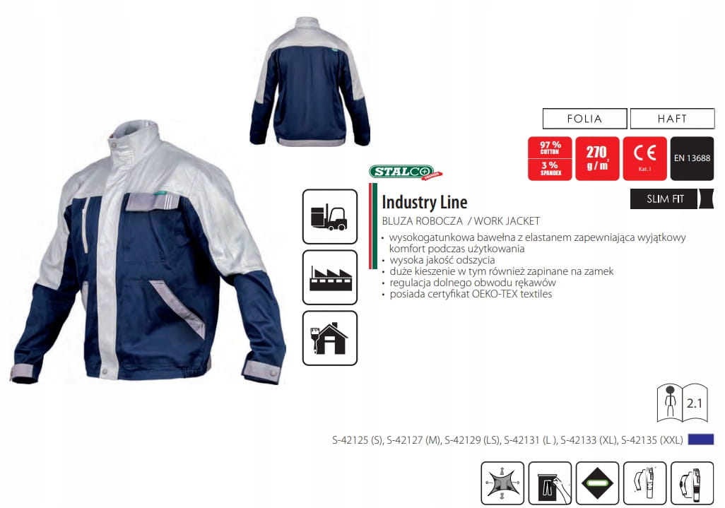 Zastosowanie: - ubranie sprawdzi sie podczas wykonywania prac transportowo-magazynowych