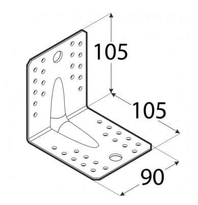 Model KP należy do kategorii kątowników i ma wymiary: wysokość 105 mm, długość 105 mm, szerokość 90 mm.