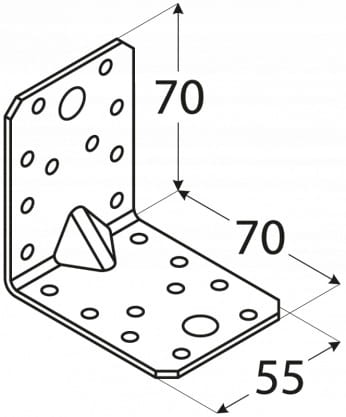 Model KP należy do kategorii kątowników i ma następujące wymiary: wysokość 70 mm, długość 70 mm, szerokość 55 mm.