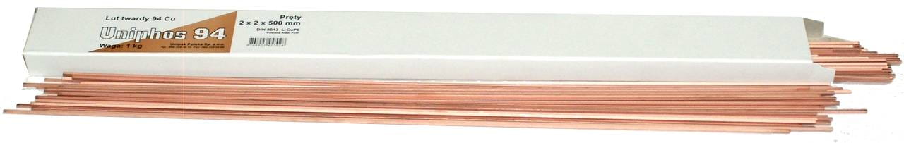 Lut twardy Uniphos S94 2x500mm Oferowane luty cechują się wysoką stabilnością termiczną i mogą być używane do lutowania większości medzianych instalacji do wody pitnej, CWU, CO, gazowych, chłodniczych, olejowych i tym podobnych. Do lutownia mosiądzu i brązu należy, razem z lutami twardymi, używać topnika UNISIL.