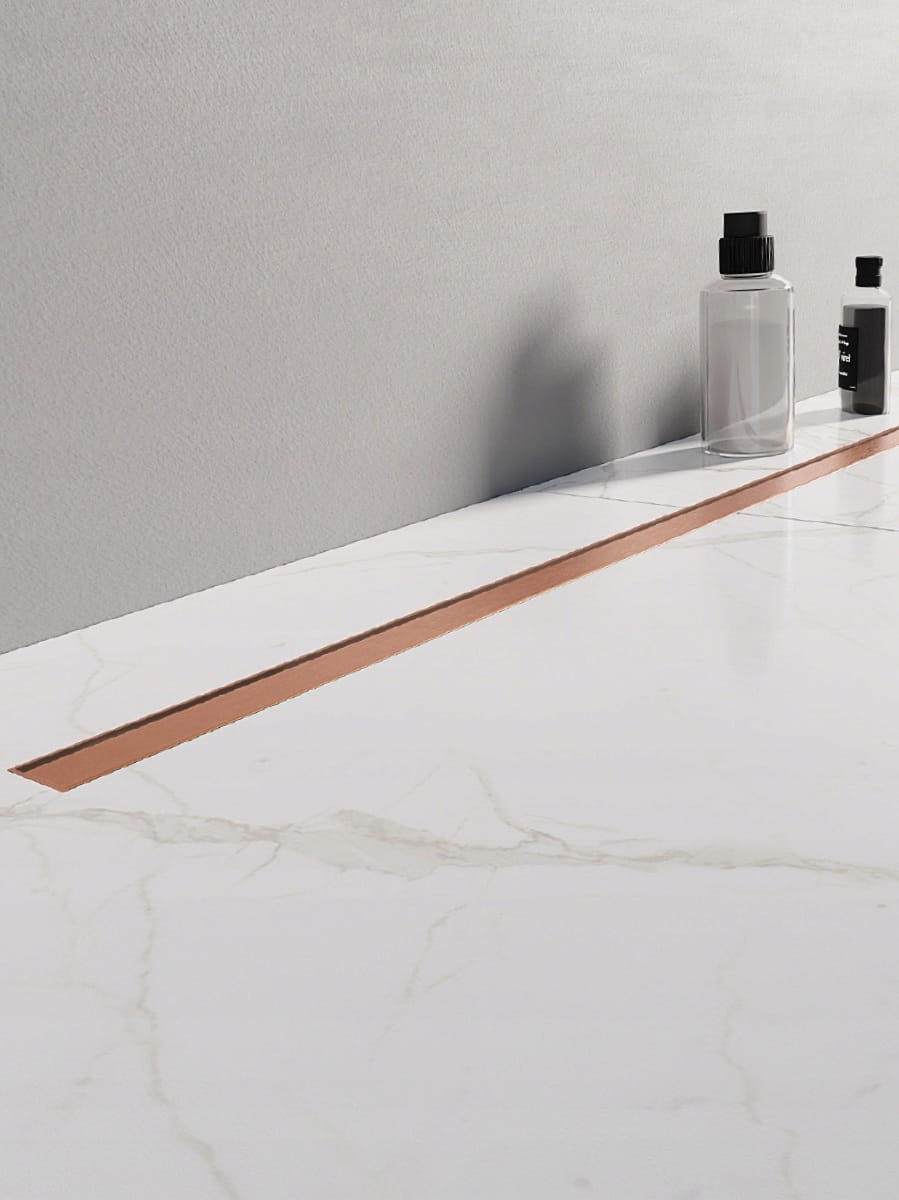 ODPŁYW LINIOWY VISIO SLIM COPPER charakteryzuje się prostą i elegancką formą.