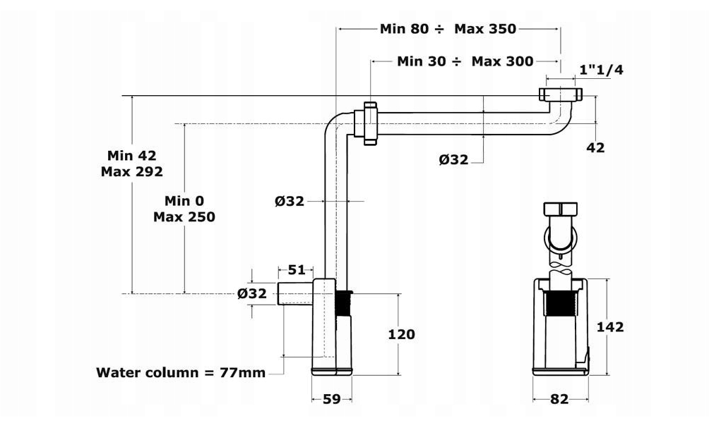 - Przyłącze spustu 1 1/4 ' x o 32.