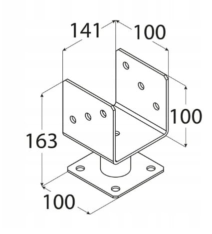 Podstawa słupa przykręcana do betonu 141x141x163mm