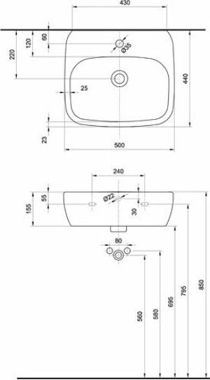 Jest to umywalka o wymiarach 500 x 440 mm firmy Koło z serii Koło Style o kształcie prostokątnym.Wykonana z najwyższej jakości ceramiki. Przeznaczona do montażu na ścianie.