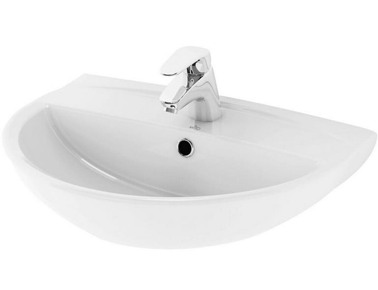 Umywalka MITO 50 z owalną misą i centralnie usytuowanymi otworem na armaturę zapewnia wygodne użytkowanie.