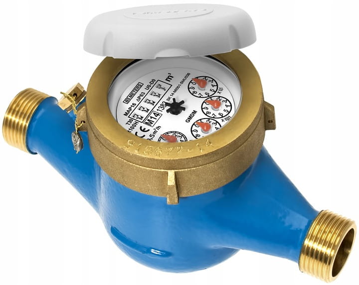 Wodomierz wielostrumieniowy, suchobieżny wysposażony w klapkę chorniącą liczydło.